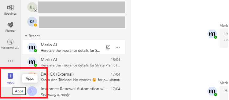 To install Merlo AI teams agent, you must be logged into your organization's Teams application. Please follow the steps below to install Teams app: