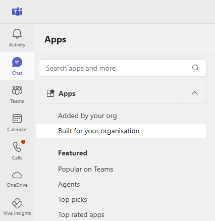 Select "Built for your Organization" from the menu